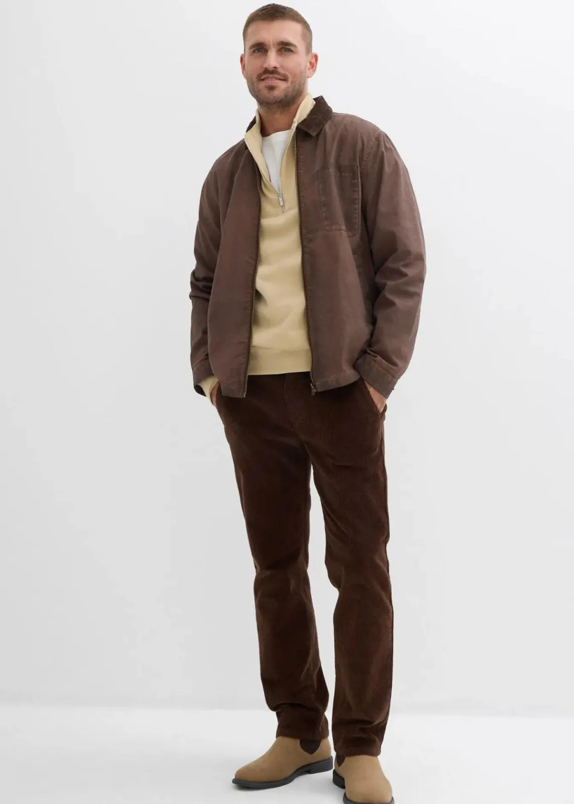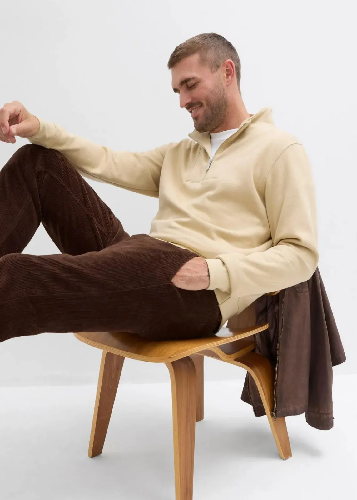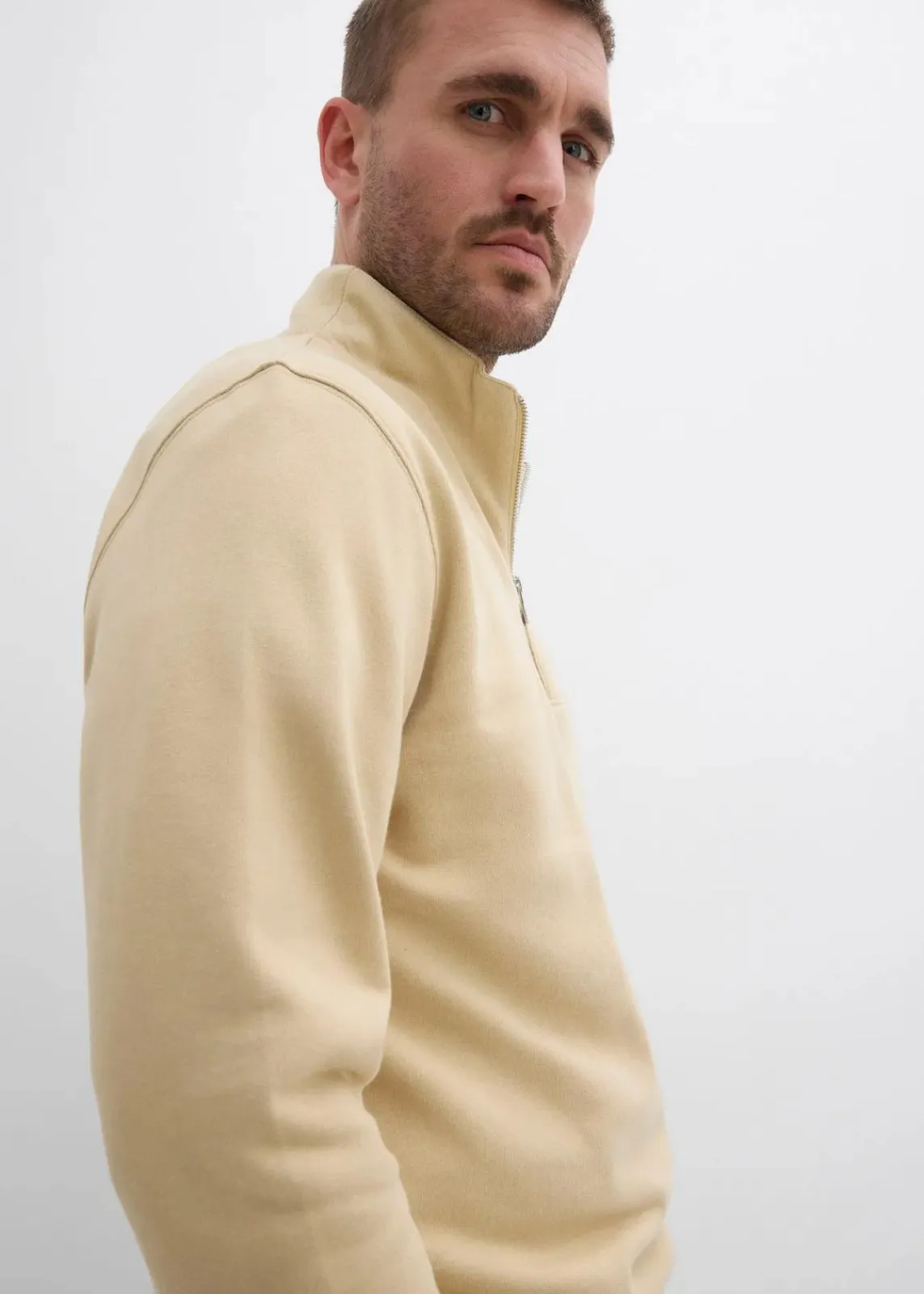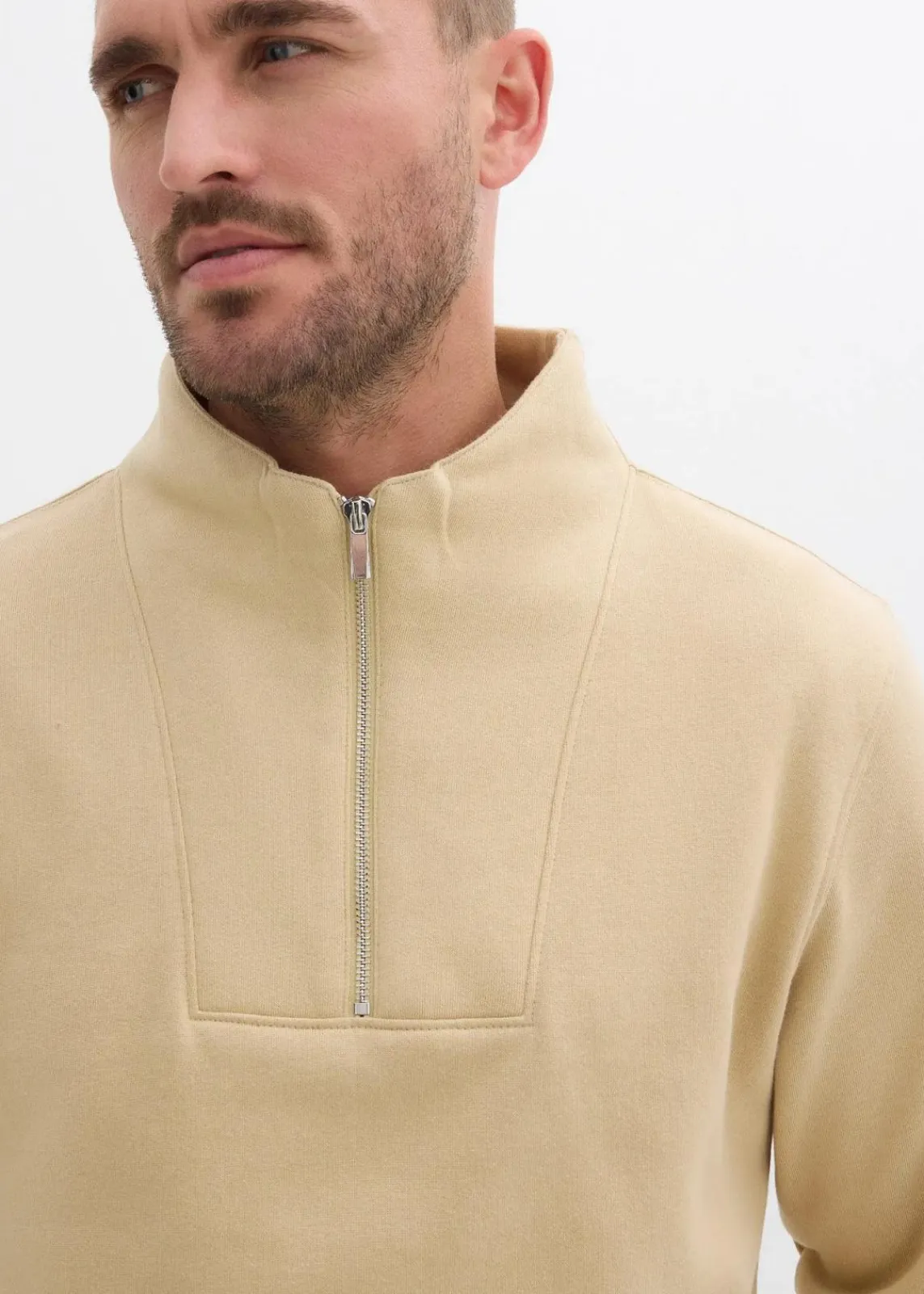 modernes Sweatshirt mit Troyerkragen und Reißverschlussöffnung, innen weich angeraut