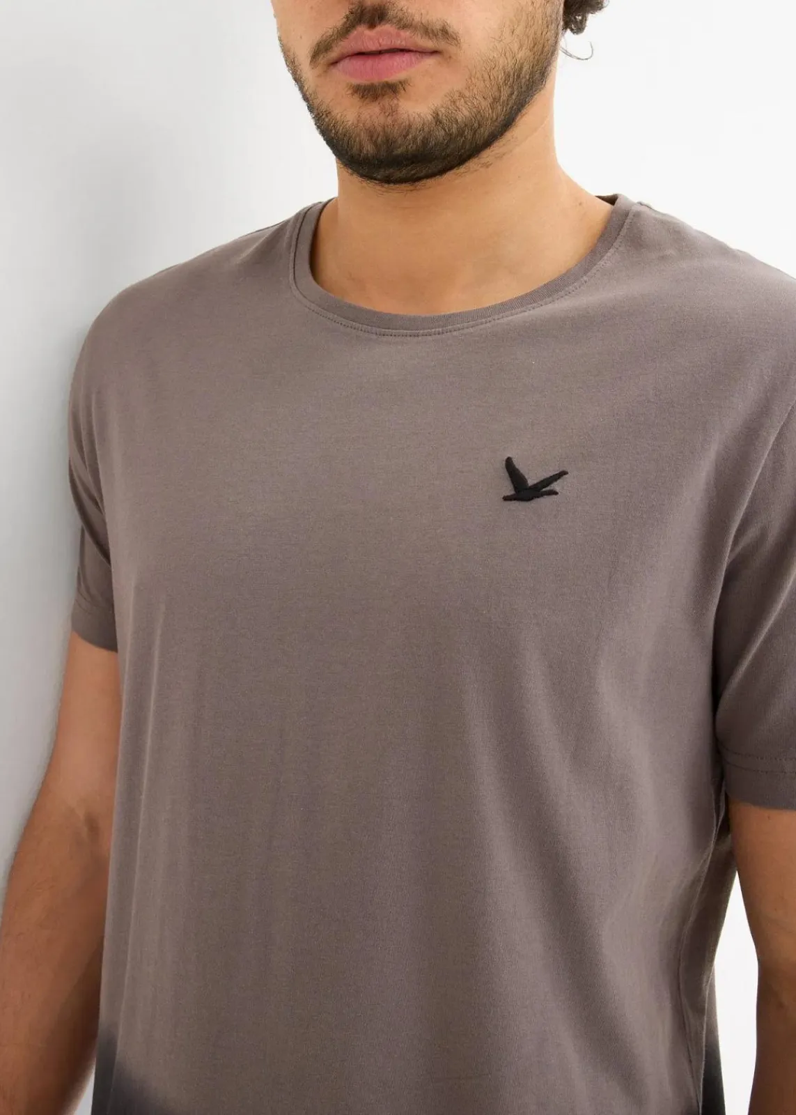 Modernes T-Shirt mit Farbverlauf und einer kleinen Stickerei auf der Brust