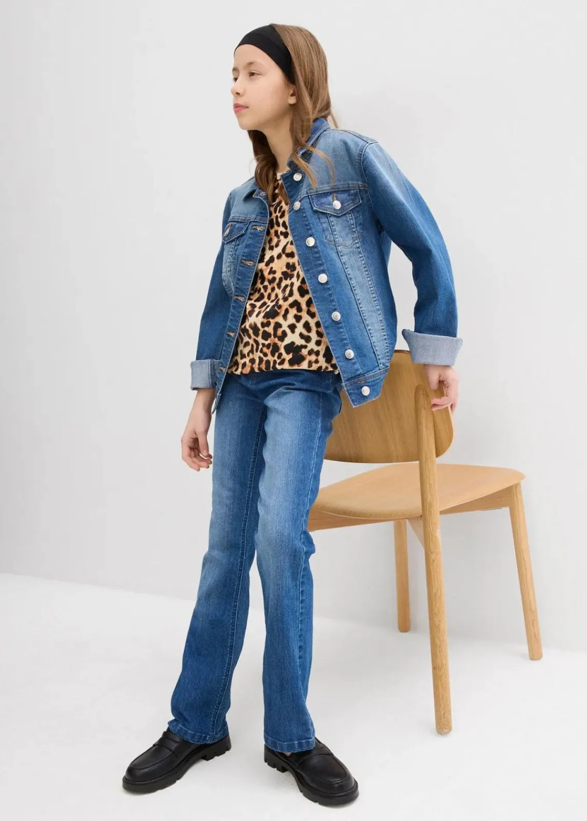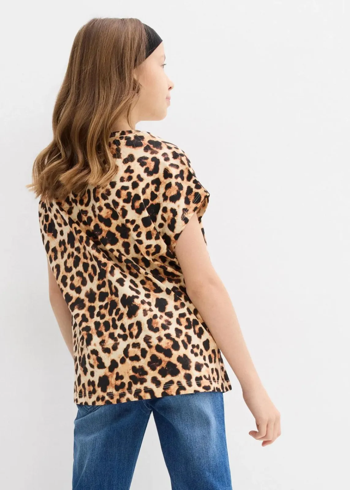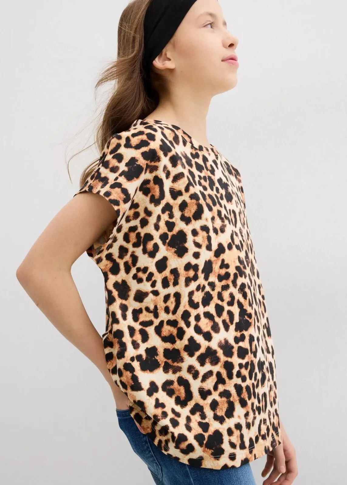 2er-Pack Sommerliche T-Shirts für Mädchen: Rundhalsausschnitt, überschnittene Ärmel, Print-Mix – Uni-Variante und Leo-Allover-Muster für jeden Style!