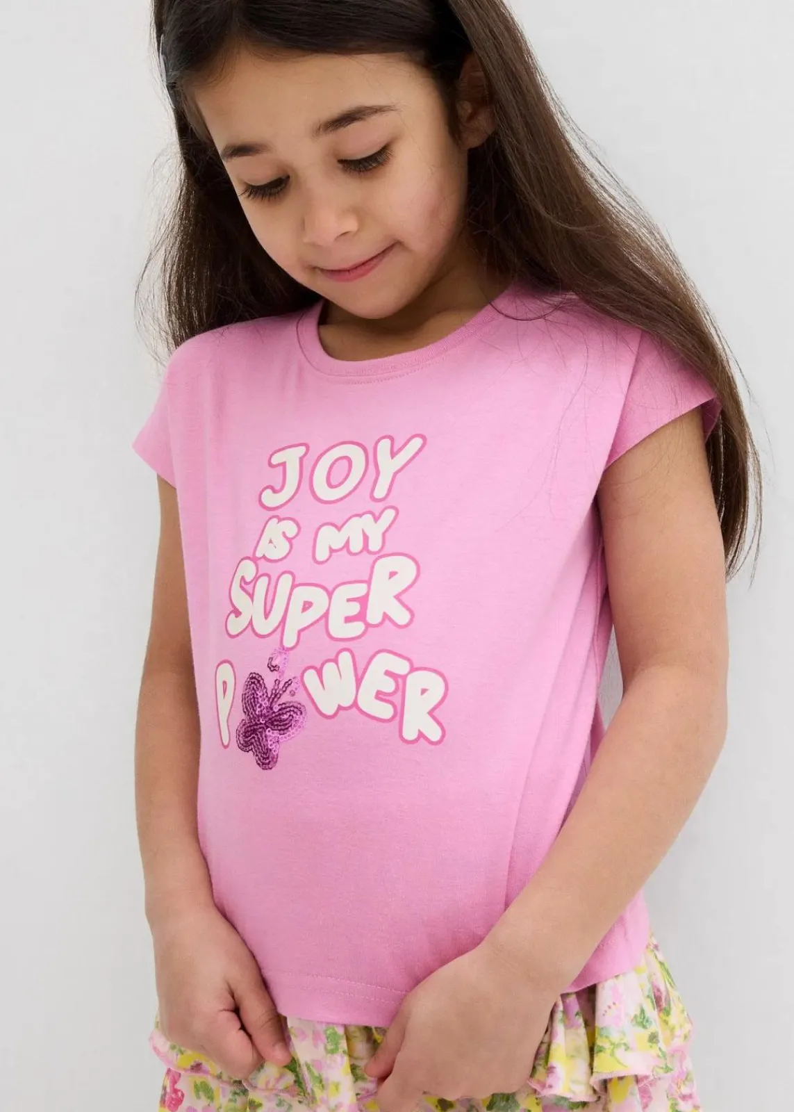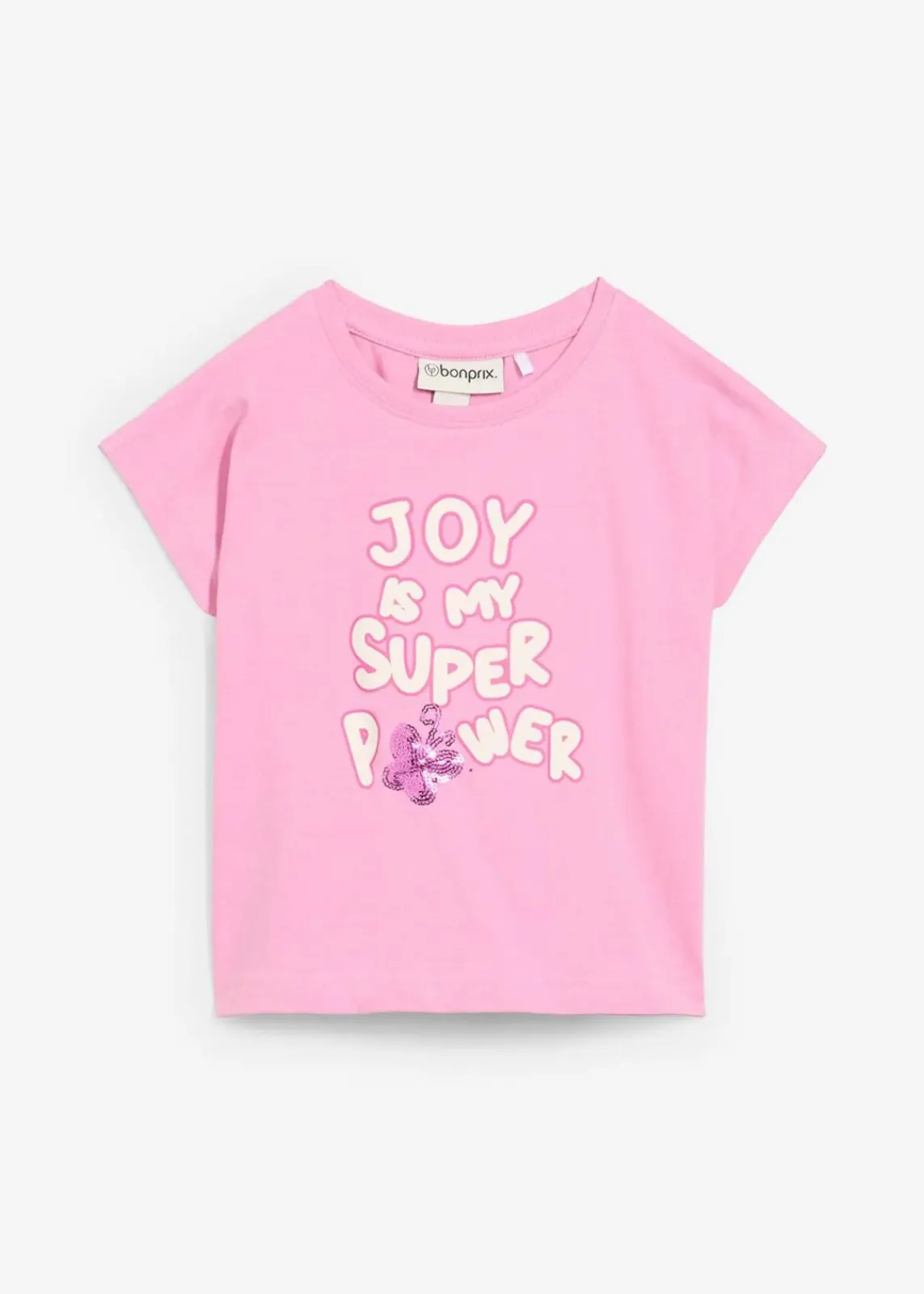 Modisches Mädchen T-Shirt mit sommerlichen Druck und Pailetten