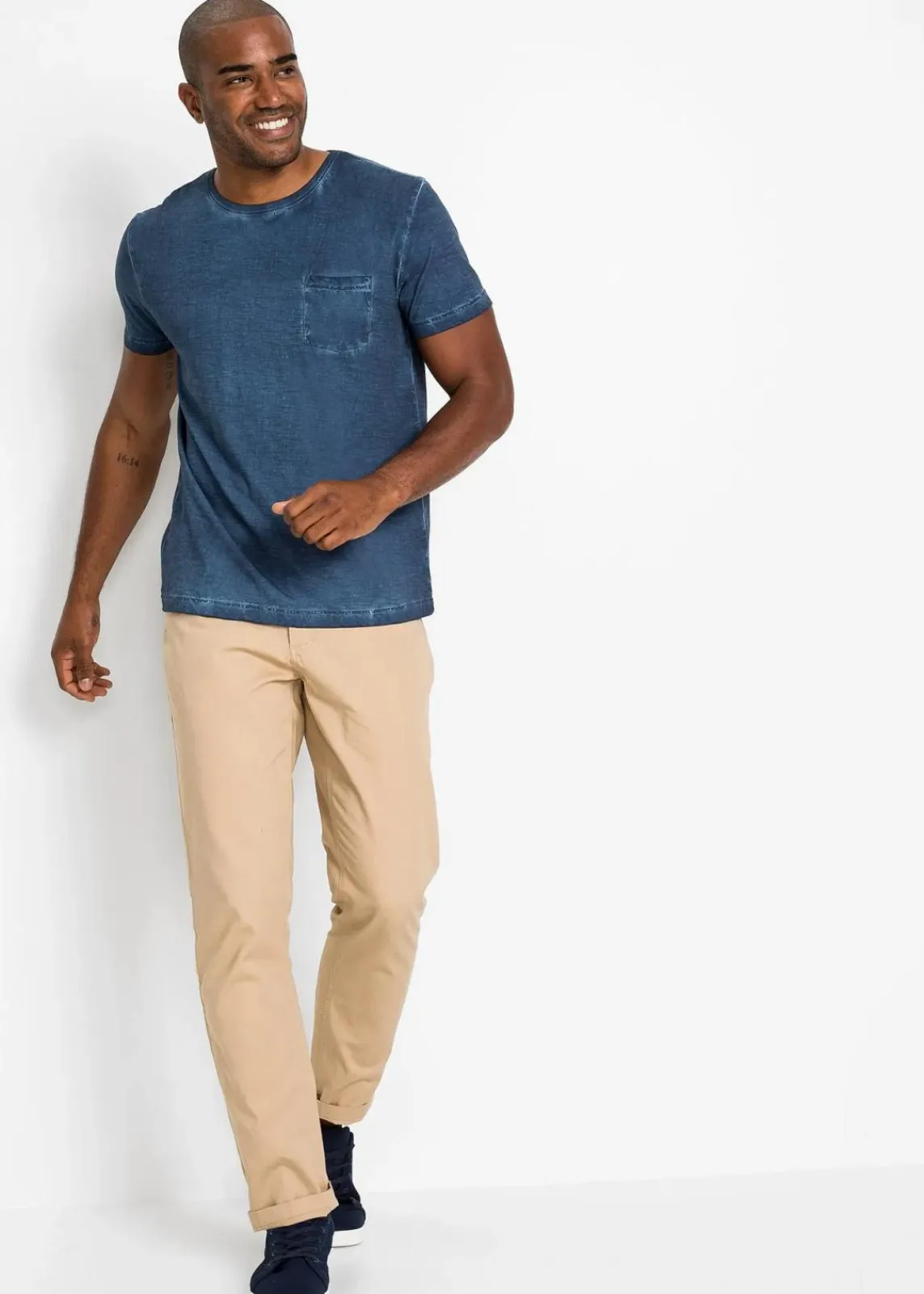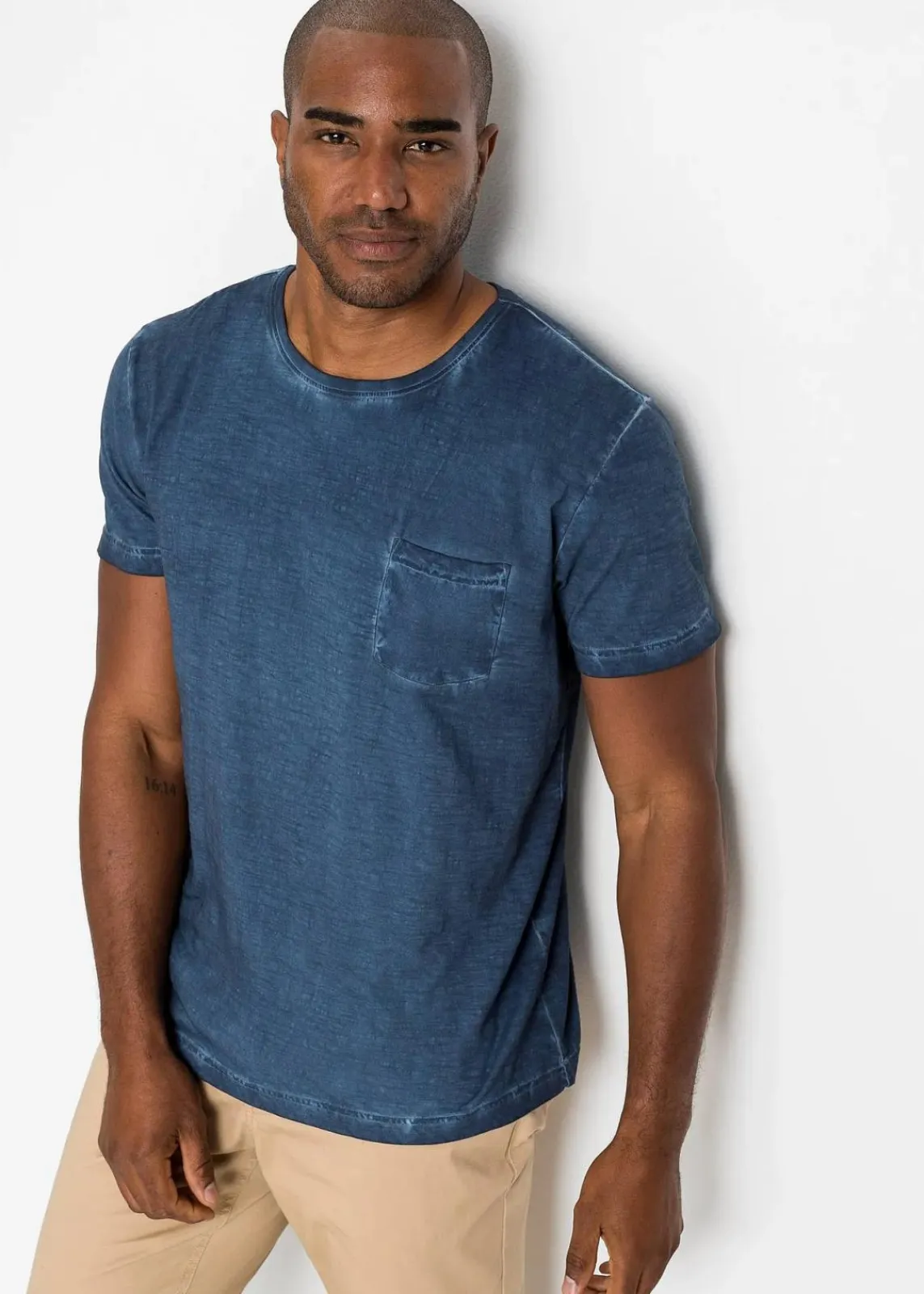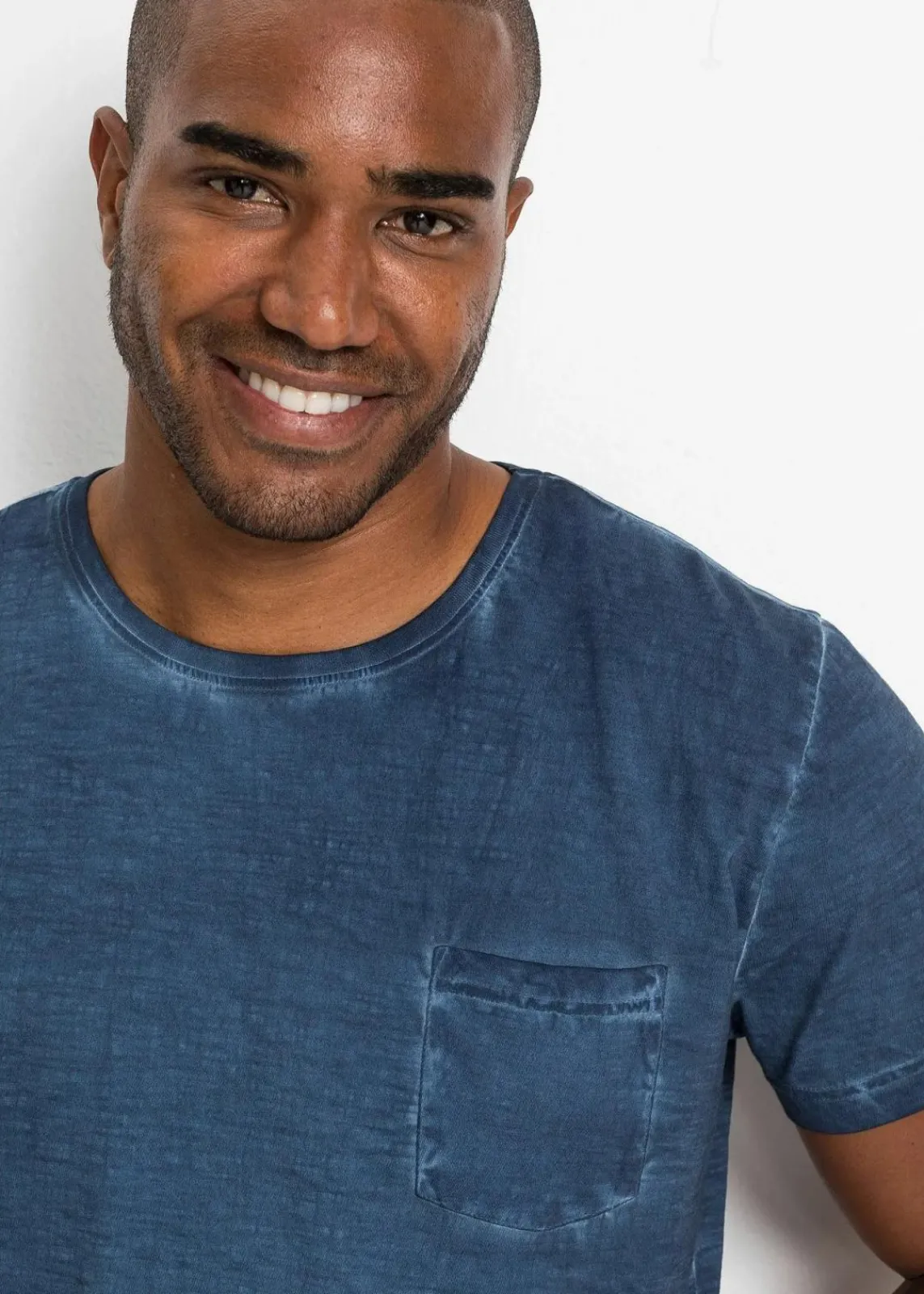 Trendiges Herren T-Shirt mit Brusttasche in gewaschener Optik