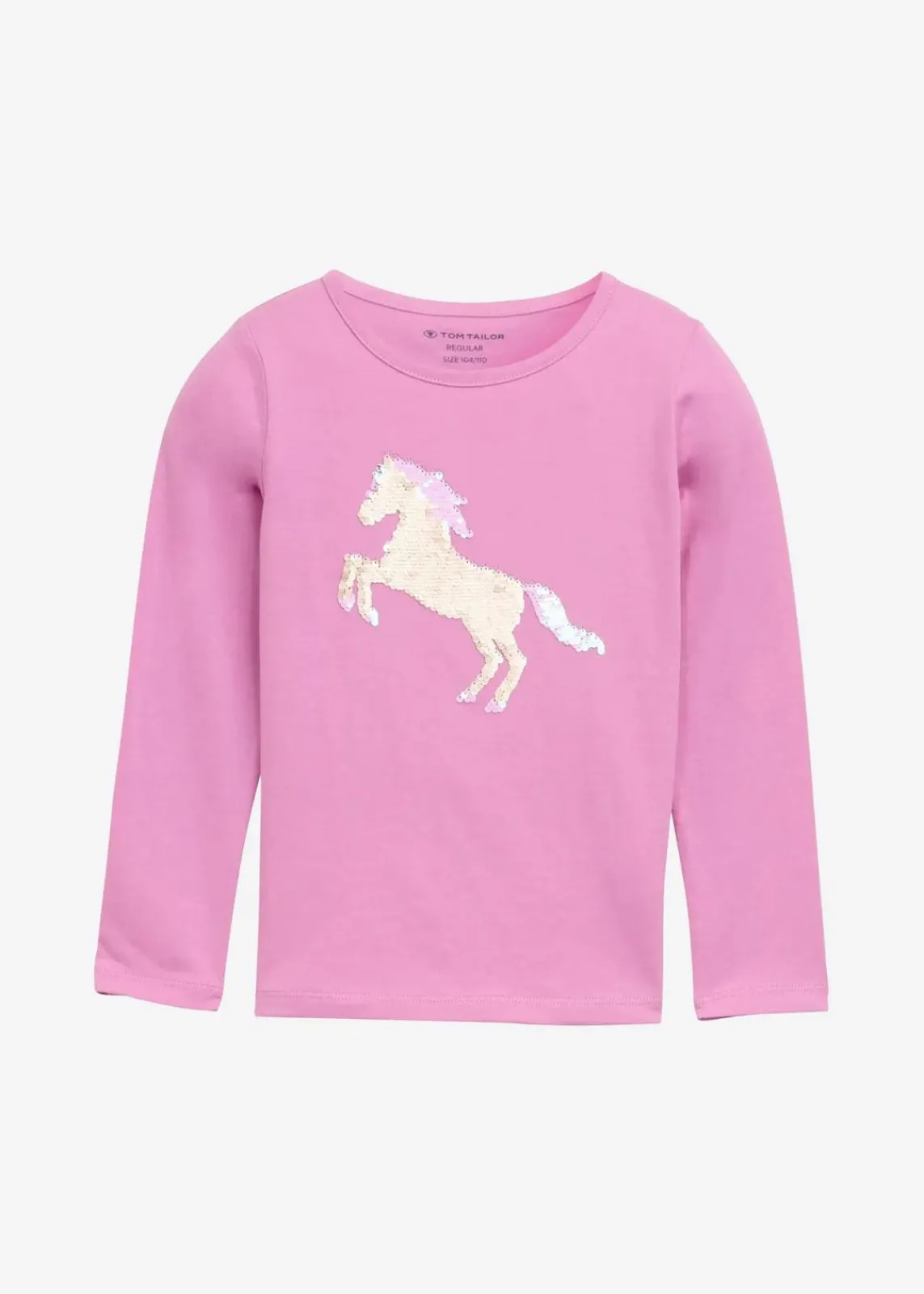Tom Tailor Longsleeve mit Wendepailletten auf der Vorderseite. Aus einem Single-Jersey-Stoff aus Baumwolle.