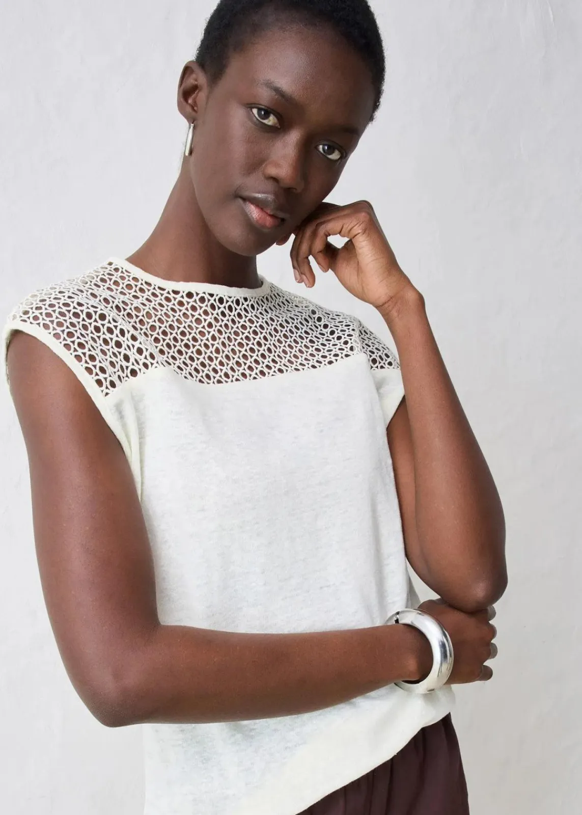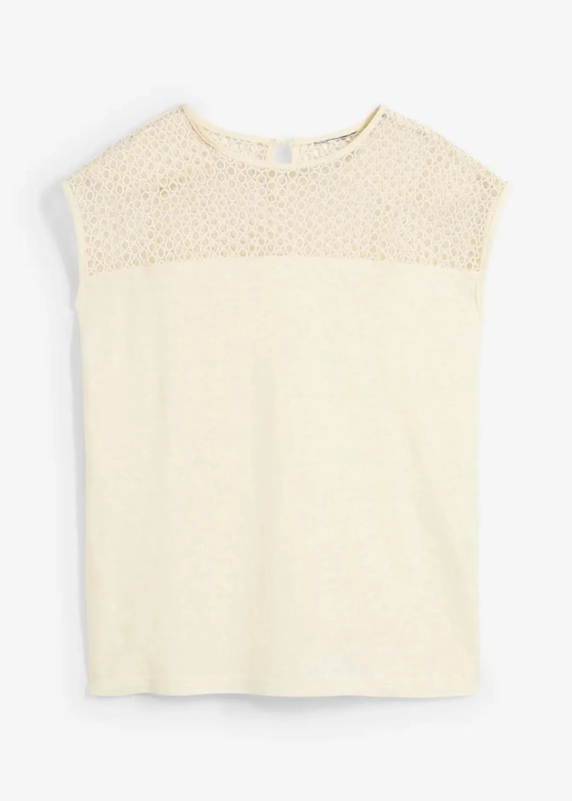 modernes Premium Top in schöner Lochstickerei und 100% Leinen