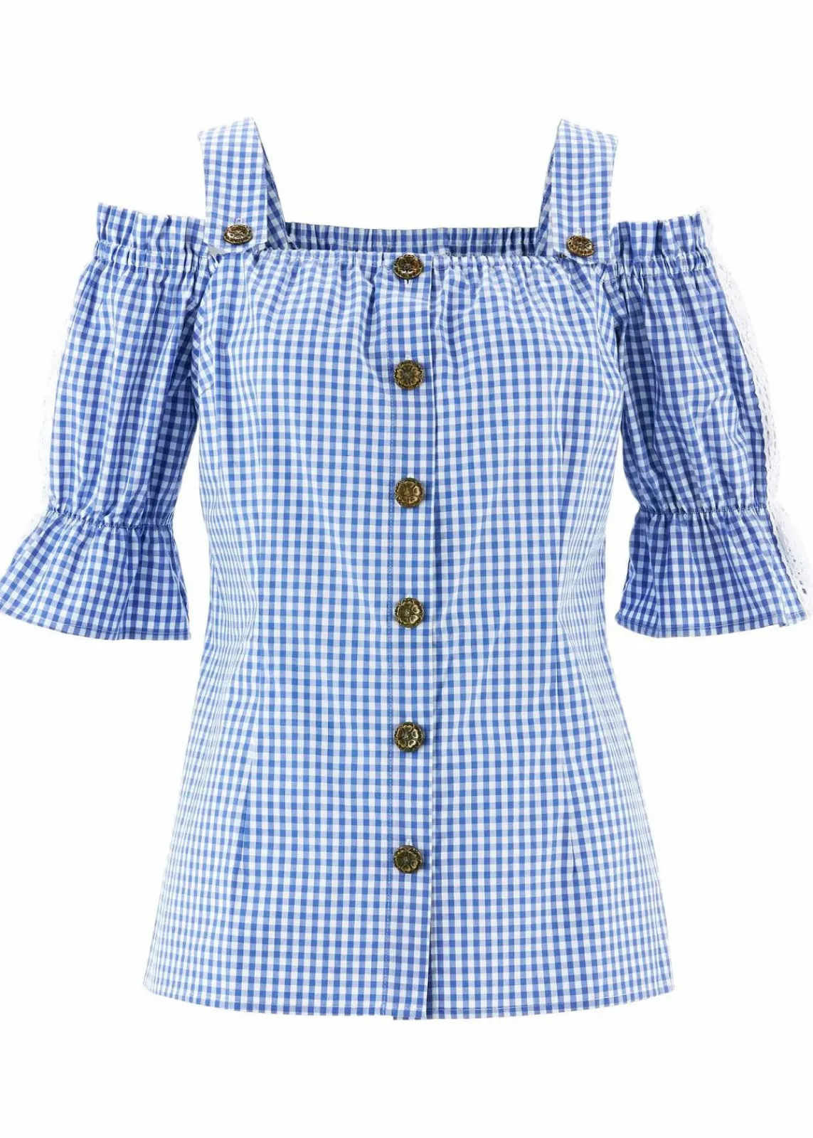 Trachten-Karobluse mit origineller Ärmellösung und Häkelspitze