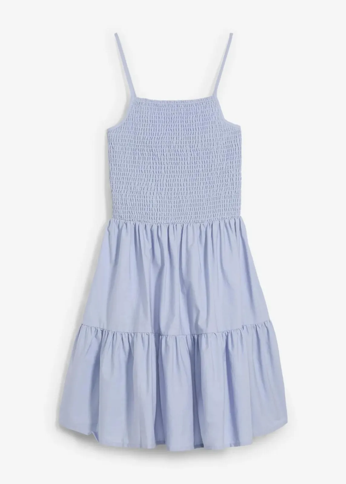 Trägerkleid aus reiner Bio-Baumwolle mit Volants und Smok