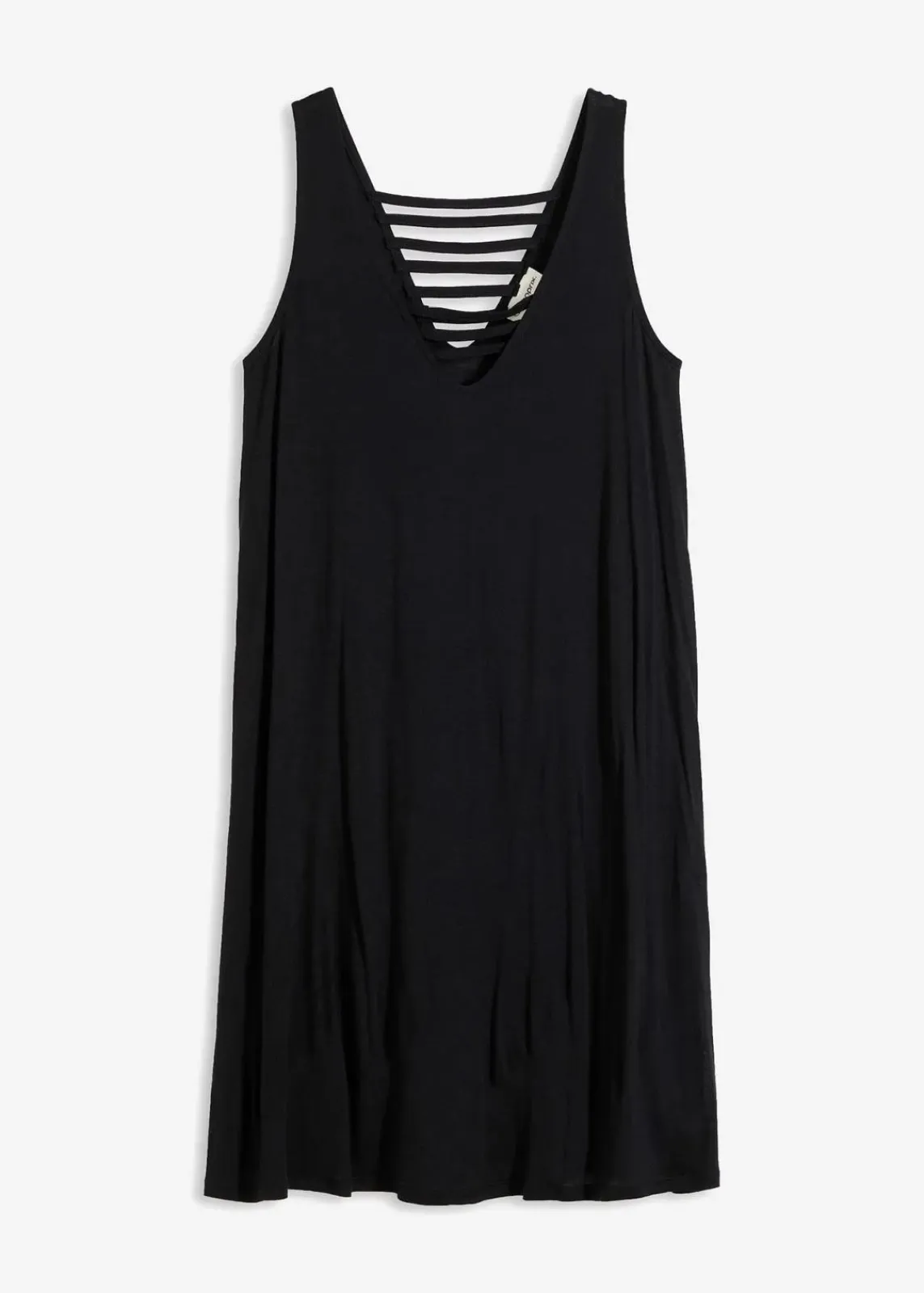 Ärmelloses Strandkleid mit V-Ausschnit vorn und hinten.