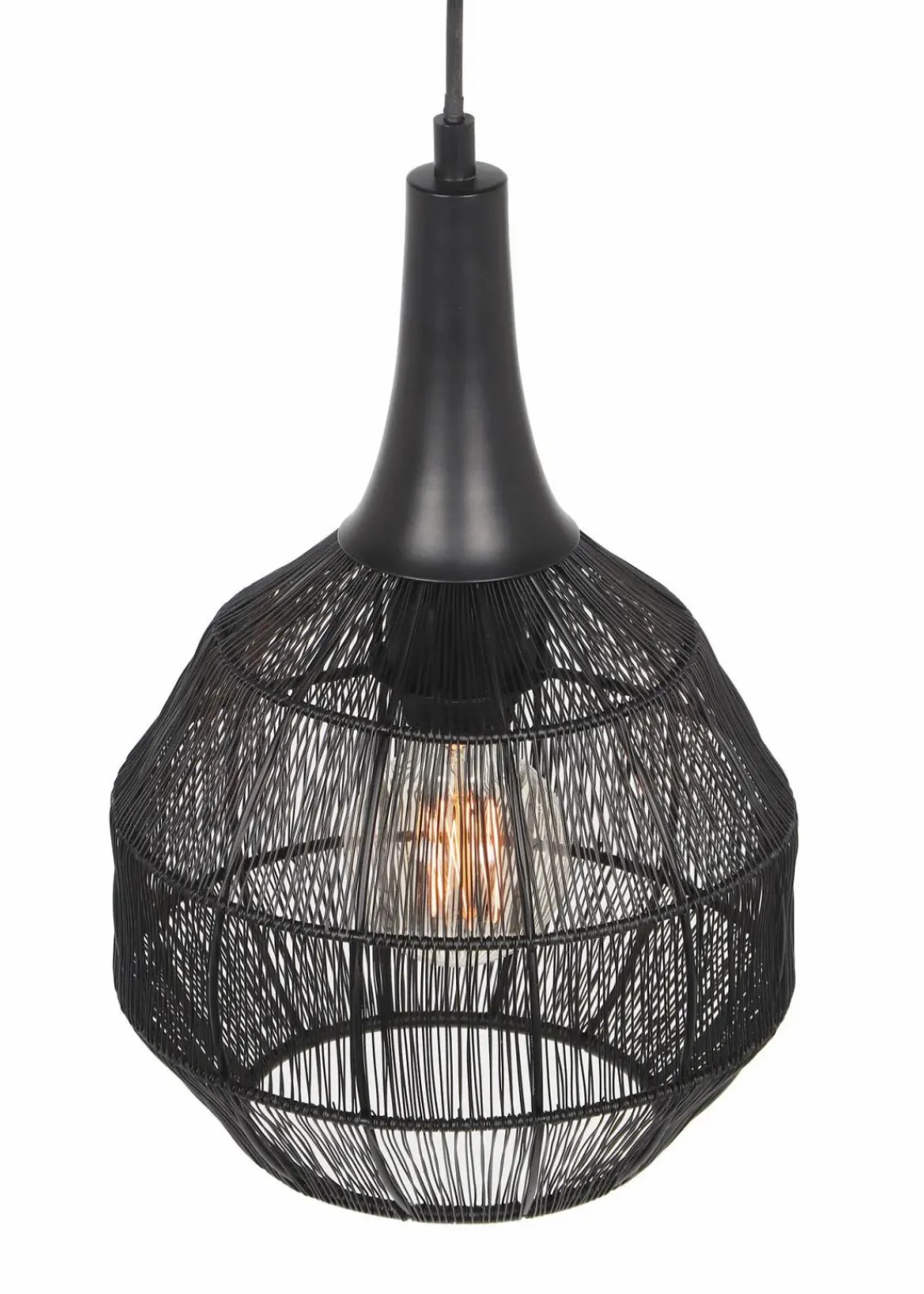 Diese Pendelleuchte fasziniert mit ihrem beeindruckenden Drahtgeflecht und schafft ein einzigartiges Licht- und Schattenspiel, das an die Pracht von 1001 Nacht erinnert. Ihr luftiger, eleganter Charakter verleiht jedem Ess- und Wohnbereich einen Hauch orientalischen Flairs. Die Farbgebung in Schwarz matt unterstreicht den exotischen Charme und setzt stilvolle Akzente. Für eine energiesparende Beleuchtung empfiehlt sich die Verwendung eines LED Leuchtmittels. Diese sind eine optimale Alternative zu herkömmlichen Halogen Leuchtmitteln und stehen für eine hohe Lichtqualität und eine Energieeinsparung von bis zu 80%. Zusätzlich stehen LED Leuchtmittel für eine lange Lebensdauer, einer geringen Wärmeentwicklung und schonen gleichzeitig die Umwelt.
