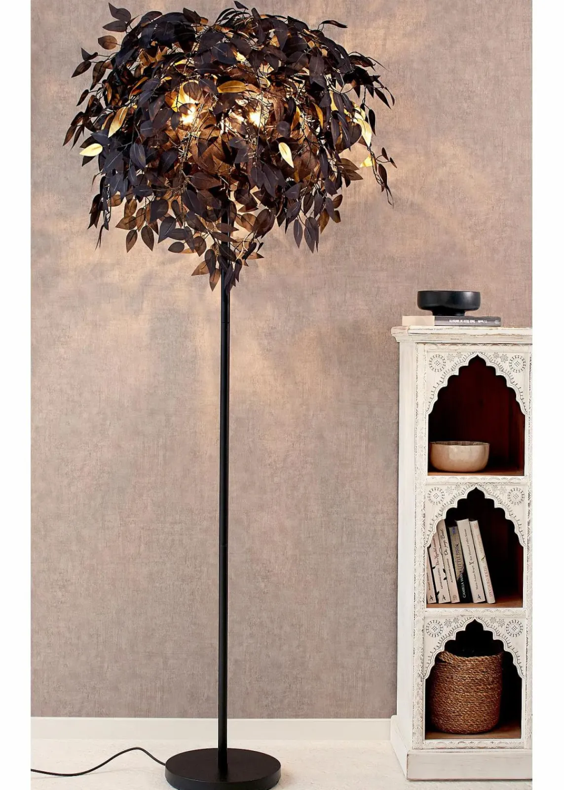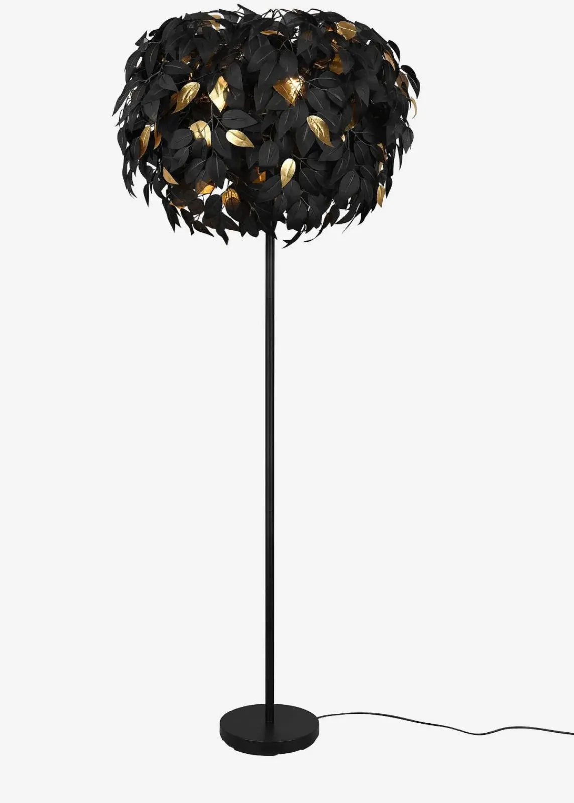 Ausgefallene Stehleuchte mit dekorativen Kunststoffblättern
