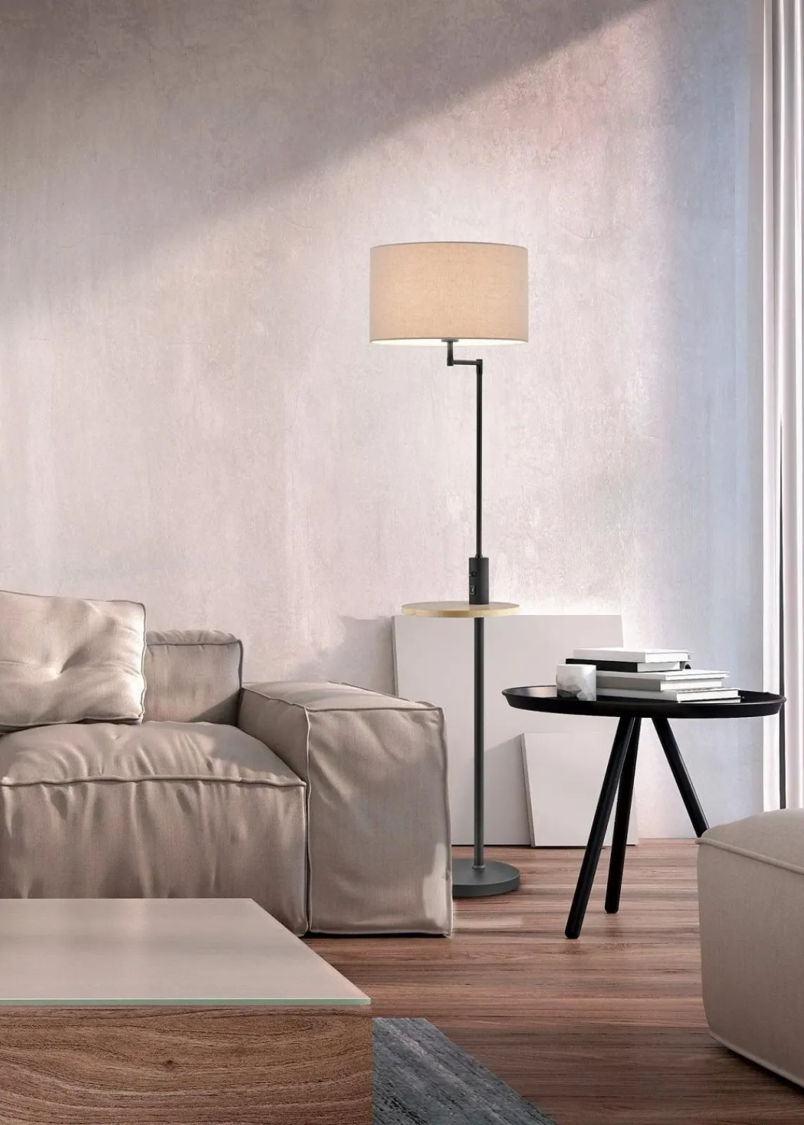 Diese moderne Stehleuchte lässt sich perfekt im Flur oder neben dem Sofa platzieren und schafft Lichtakzente, die jedem Wohnraum ein gemütliches Ambiente verleiht. Zusätzlich verfügt die Stehleuchte über einen kleinen Holztisch und einen USB + USB-C Anschluss mit Ladefunktion, so bietet es sich beispielsweise optimal an, das Handy neben dem Sofa abzulegen und gleichzeitig aufzuladen. Die praktische Leuchte hat eine Höhe von 160 cm und eine Auslage von 40 cm. Die Kombination aus Nickel matt und dem grauen Stoffschirm, in Verbindung mit dem Holztisch, verleiht der Leuchte ein modernes Erscheinungsbild. Für eine energiesparende Beleuchtung empfiehlt sich die Verwendung eines LED Leuchtmittels. Diese sind eine optimale Alternative zu herkömmlichen Halogen Leuchtmitteln und stehen für eine hohe Lichtqualität und eine Energieeinsparung von bis zu 80%. Zusätzlich stehen LED Leuchtmittel für eine lange Lebensdauer, einer geringen Wärmeentwicklung und schonen gleichzeitig die Umwelt.