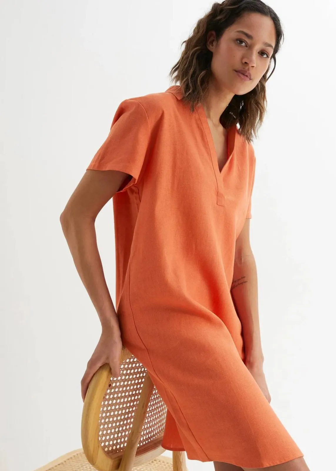 Locker fallendes Kleid aus luftigem Leinen-Mix