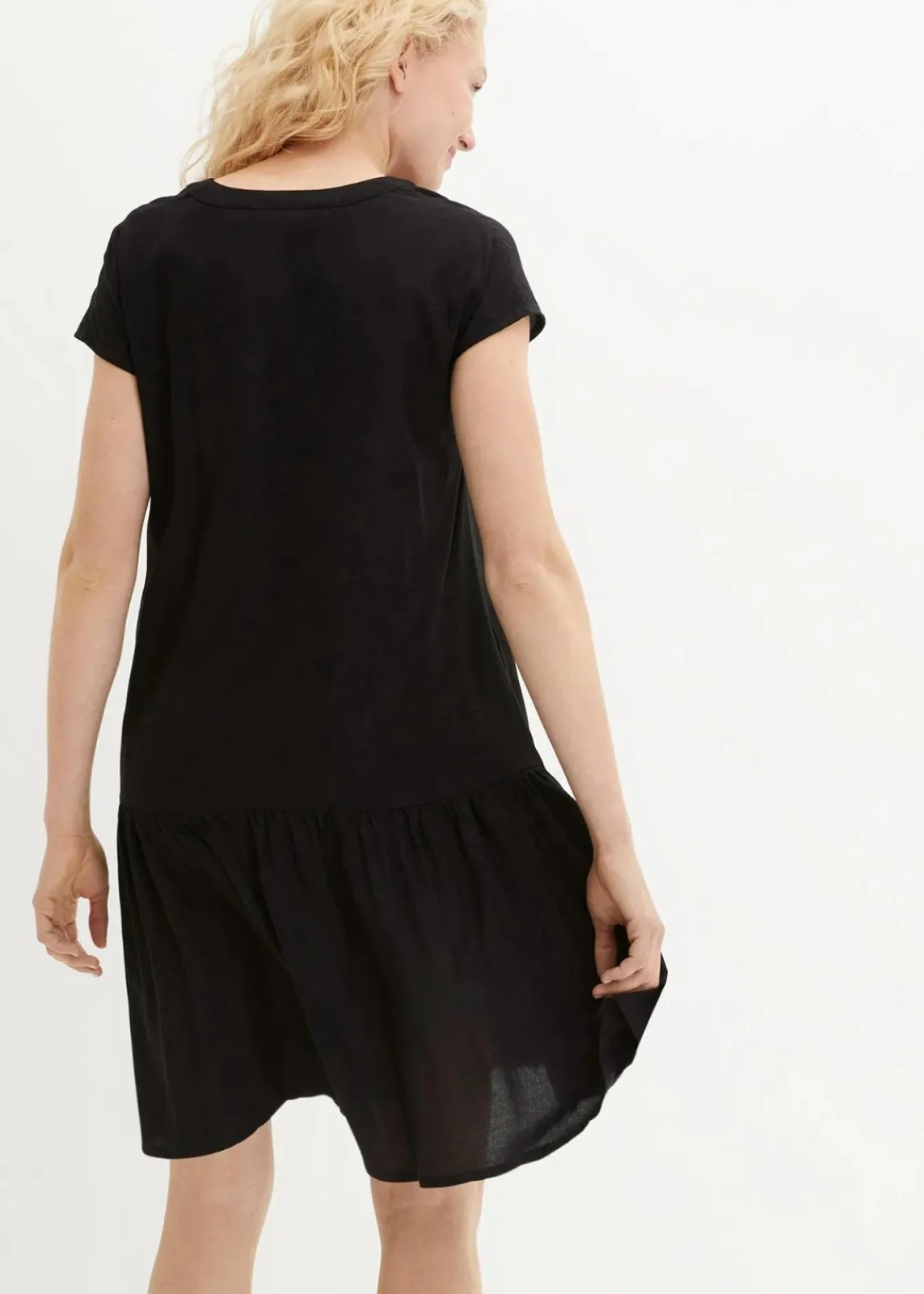 Knieumspielendes Midi-Shirt-Kleid mit Volants fällt locker, in A-Linie
