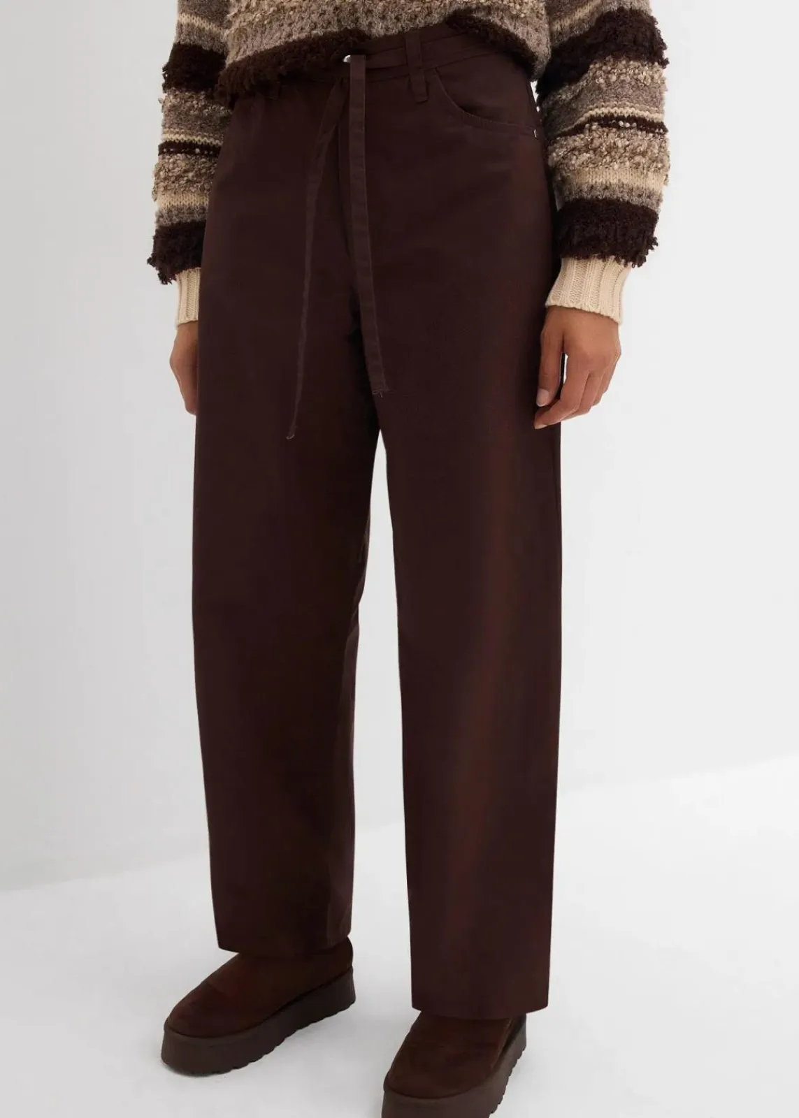 Lässige Twillhose mit Bindeband aus reiner Baumwolle