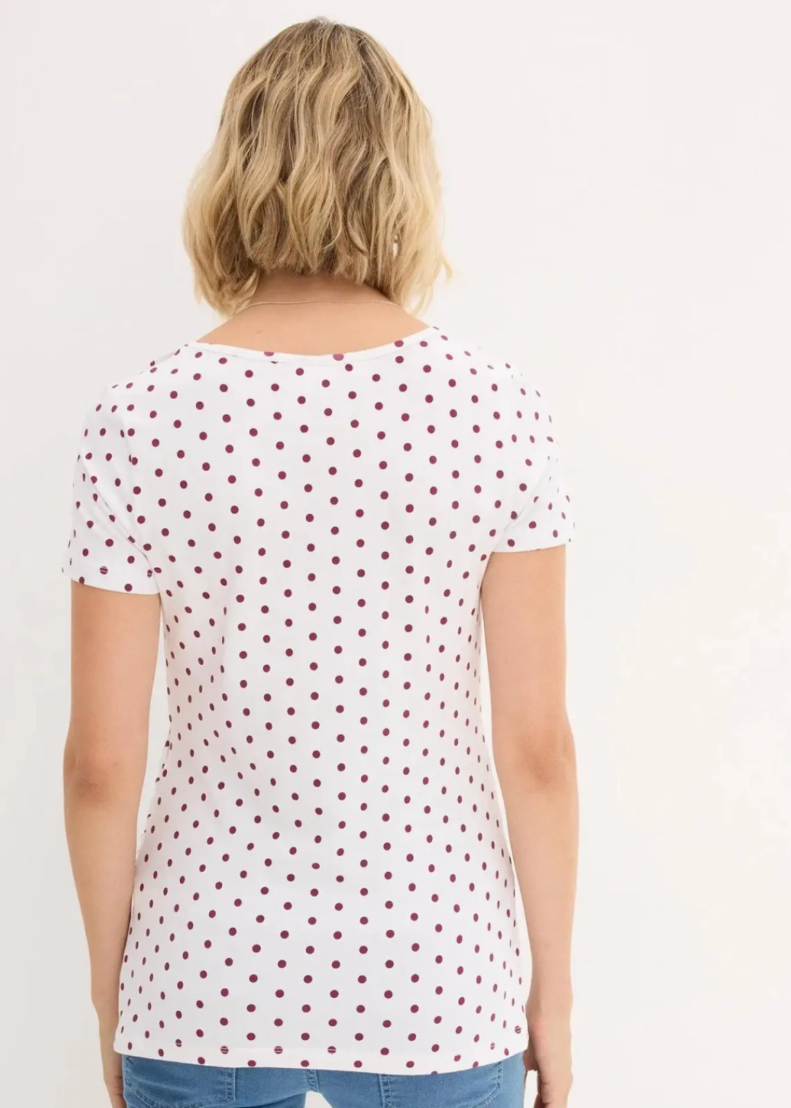 Die gepunkteten Schwangerschaftsshirts im Doppelpack sind aus weicher Bio-Baumwolle mit etwas Elasthan gefertigt, was für einen angenehmen Tragekomfort sorgt. Die sanften Raffungen an den Seiten bieten ausreichend Platz für den Babybauch und ermöglichen ein bequemes Tragen bis zum Ende der Schwangerschaft.
