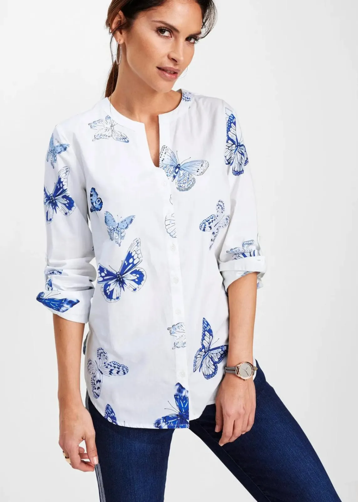 Langarm Bluse mit Krempelfunktion