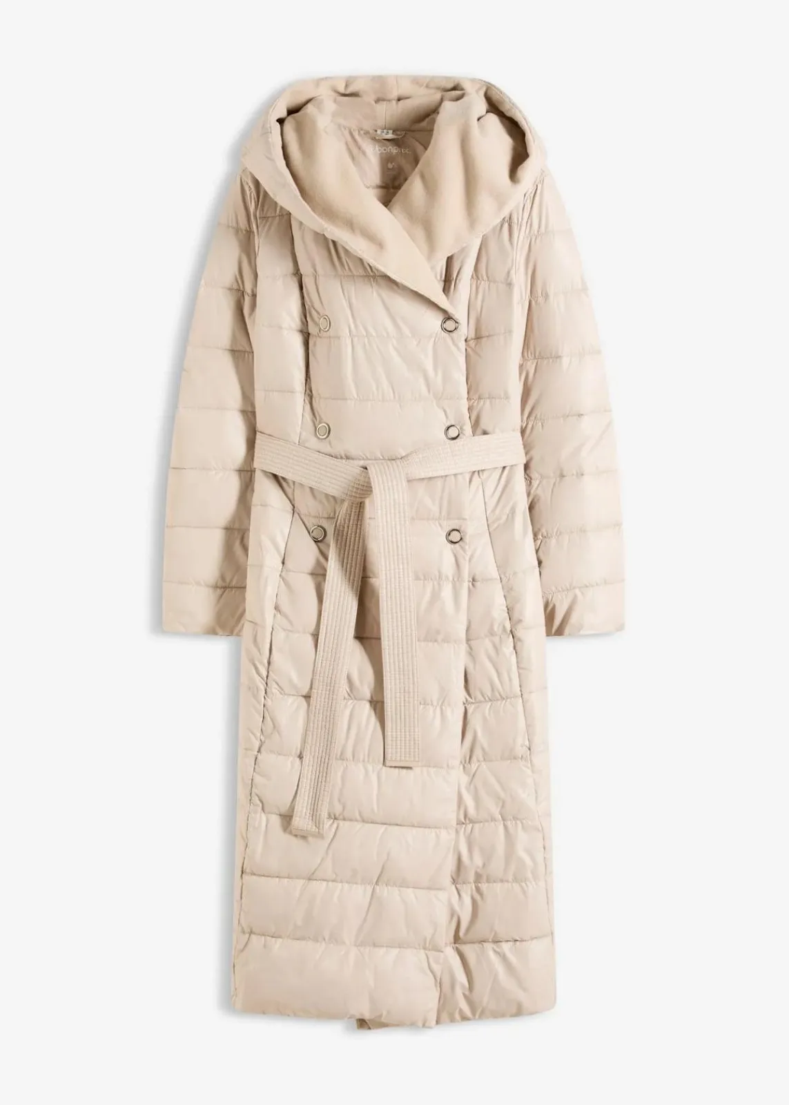 schöner Steppmantel mit Wollimitat Besatz und Bindegürtel (2-tlg.)