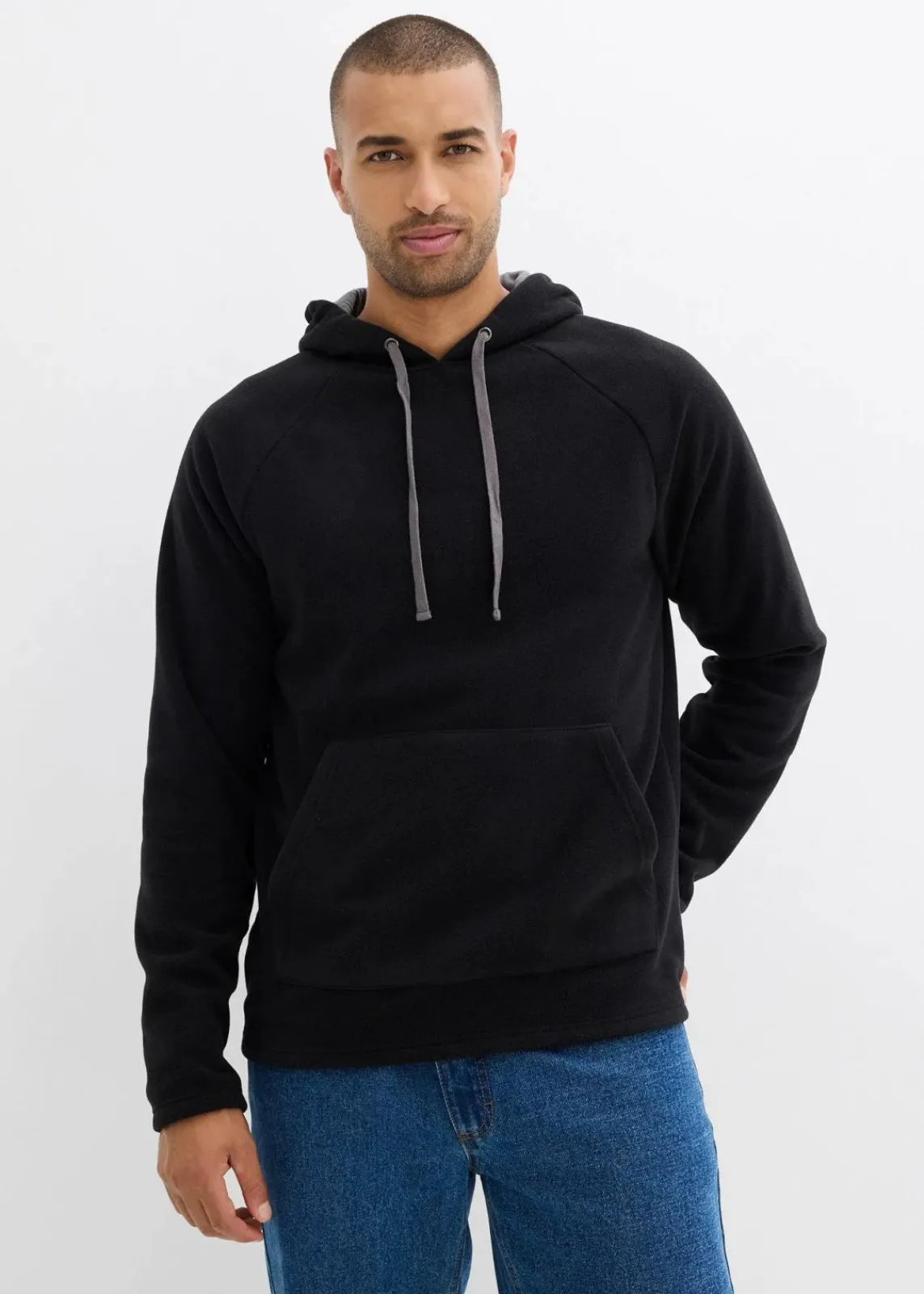 moderner Basic Fleece-Pullover mit kontrastfarbigen Bindebändern