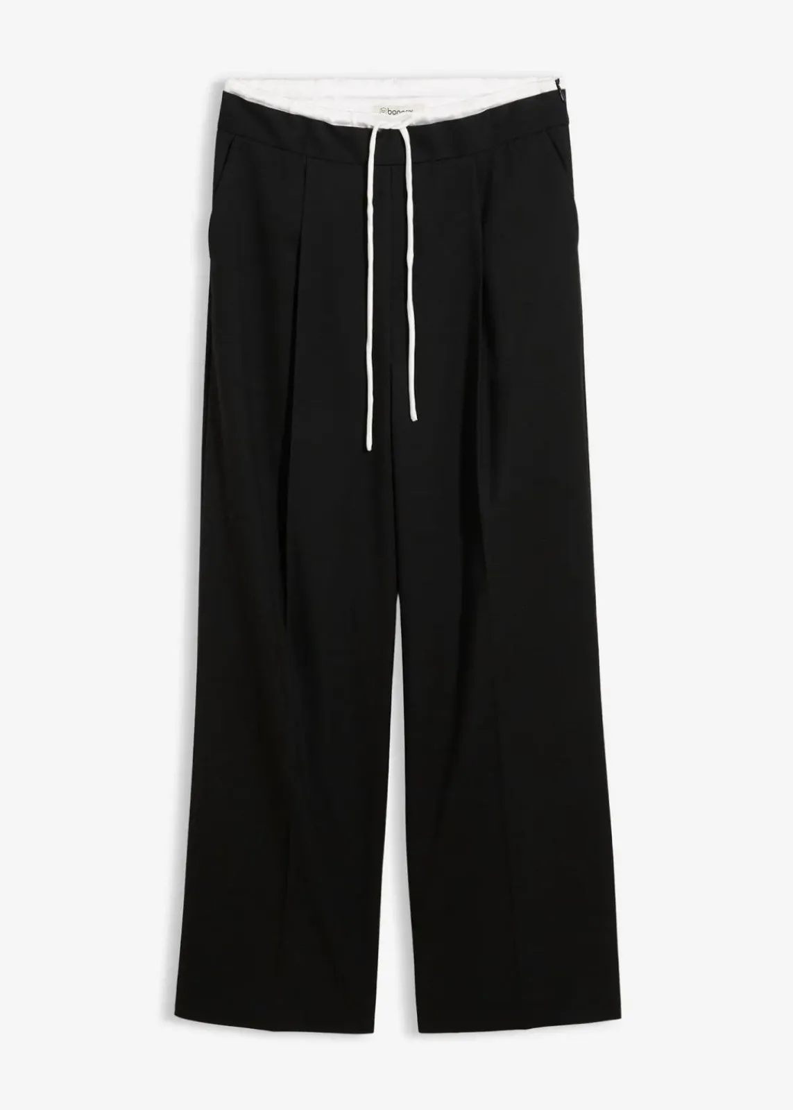 Hose mit weitem Bein und kontrastfarbigen Doppelbund mit Zip Fly und Knopf