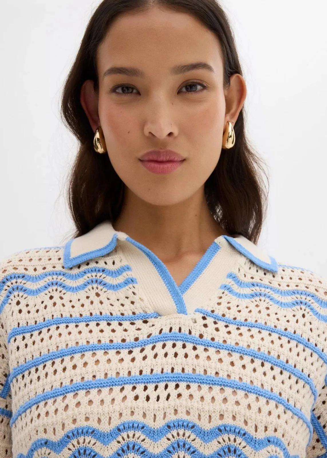 Weites sommerliches Strickshirt in Häkeloptik aus luftigem Baumwoll-Leinen-Mix
