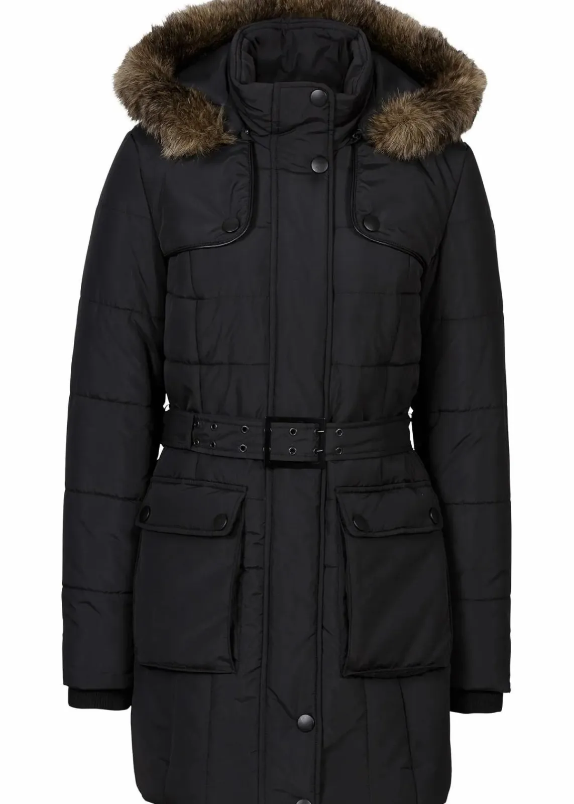 Diese Jacke von bpc ist ein praktischer und ansprechender Begleiter an kalten Tagen. Sie ist warm gefüttert und mit einer leichten Steppung gearbeitet. Ein kuscheliger Fellimitatbesatz schmückt die abnehmbare Kapuze und sorgt für eine modische Note.Die Winter-Jacke mit zwei großen Taschen schließt mittels Reißverschluss und Druckknöpfen. Mit dem verstellbaren Gürtel lässt sich die Weite individuell regulieren.